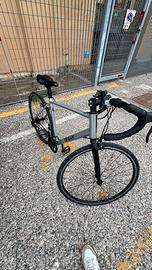 Vendo bici da corsa Triban RC100 colore grigio, taglia M. Sempre tenuta al coperto / revisionata di recente. Perfetta per strada e percorsi misti leggeri. Contattami per info, disponibile dal 16/04. Prezzo Trattabile