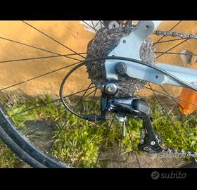 Vendo triban RC120 usata quasi solamente per andare a lavoro ogni tanto. Taglia L Comprata ad agosto 2024 La vendo con i pedali originali flat. Microshift 2X8 Gomme seminuove terreno dry all’anteriore e riverside al posteriore Presenta alcune macchie di sporco che probabilmente possono essere tolte con un detergente specifico. È una bici da corsa ma che può tranquillamente essere usata per gravel leggero
