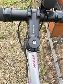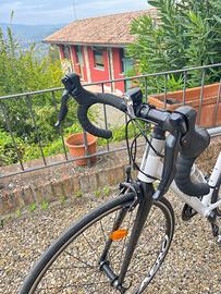 Vendo bellissima Bici da corsa Triban RC500 Woman taglia S per inutilizzo. Specifiche tecniche: Telaio comodo,posizione alta,stem regolabile,forcella carbonio,telaio alluminio. Inserti per portapacchi e parafango, compatibile con copertoni max 32mm. La nuova sella ErgoFit assicura un comfort di lunga durata. S 165-173cm Forcella in carbonio per maggiore leggerezza e precisione di guida. Perno 1"1/8 aheadset che assicura grande solidità e rigidità alla postazione di guida. Inserti per il portapacchi nella forcella. Peso massimo sulla forcella: 9kg. Leve MICROSHIFT 8 velocità, molto precise