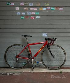 vendo magnifica bici da corsa (Bdc) marchiata con il nome del professionista (fondatore del negozio cicli-Rossi) Tullio Rossi che ci ha da poco lasciati l’anno scorso. Bici con telaio in tubazioni ultraleggere in alluminio Dedacciai U2 e forcella in carbonio. Montata completamente con gruppo top di gamma Shimano Dura-ace 7700 9 velocità. (Leve,cambio,deragliatore,guarnitura,pacco pignoni,catena…) Ruote ultraleggere Gipiemme a basso profilo montate in radiale in alluminio. Sella Gipiemme stealth con scafo in fibra di carbonio e binari in titanio. Reggisella in alluminio Shimano Durace. Bici taglia 50 (xxs/xs) La bici è una piuma e completa come in foto pesa 7.225kg (ricordo che il telaio non è neanche in carbonio ma in alluminio a sottolineare la qualità dello stesso) I pedali keywin CRM con perno in titanio ultraleggeri da 192g non sono inclusi ma è valutabile la vendita. Ritiro a mano a Roma .