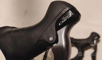 Atala SLR 150 bicicletta da corsa con telaio in alluminio e gruppo di trasmissione Shimano Claris, perfetta per scoprire il piacere dei lunghi giri in bici da corsa. NUOVISSIMA, MAI USATA, vendo per motivi familiari Scheda tecnica: Telaio-Alluminio Racing, sterzo integrato Forcella-Hi-Ten Tig ROAD 28" Serie sterzo-FSA No.16CC 1"1/8 Guarnitura-Byte alluminio 50/34 Cambio-Shimano Claris RD-R2000 8V Deragliatore-Shimano Claris FD-R2000 31,8mm Comandi-Shimano Claris ST-R2000 8x2s Freni-Alluminio caliper Pacco pignoni-Shimano CS-HG418s 11-30 Pedali-Acciaio/Resina corsa Mozzi-Alluminio 32 fori Cerchi-Alluminio doppia camera 32 fori Byte Fiandre Attacco manubrio-Byte alluminio Piega manubrio-Byte alluminio road Reggisella-Byte alluminio 27,2mm Sella-Byte U Ride Vent Coperture-Byte Gand 700x25 Taglia: M Colore-Nero/Giallo opaco Incluso accessori vari