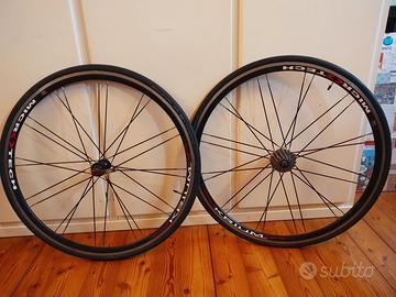 Vendo bici da corsa telaio in carbonio Scapin versione Etika e guarnitura Campagnolo Chorus 11 (cambio e freni) tenuta molto bene. La bici ha in dotazione altre due coppie di ruote come da foto, già con pignoni Campagnolo Chorus