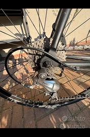 Bici da corsa / fitness Mondial clr 80 in alluminio e forcella in carbonio Manubrio dritto Copertoni da 28 e pastiglie freni nuovi Gruppo sora 50-39-30 / tiagra 11-34 Leggeri segni di utilizzo normale Appena sostituito il movimento centrale e ingrassato cuscinetti ruote
