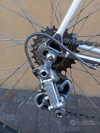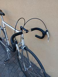 Bicicletta da corsa vintage, fatta fare su misura nello storico negozio bresciano di Pierfranco Vianelli campione olimpionico, telaio con tubazioni Columbus 27.2 rinforzato e pantografato misura 58x58 con movimento centrale alleggerito e forcellini Campagnolo, vernice ed adesivi originali dell'Epoca, cerchi FIR misura 28 con copertoncini, cambio con deragliatore e leve pantografate Campagnolo Nuovo Record, guarnitura Ofmega Cx pressofusa con corona pantografatae con pedaline e puntali, pipa pantografata e piega manubrio 3ttt con nastratura nuova, sella San Marco Concor Super corsa in vera pelle con reggisella scaricato, pinze e leve freni Universal Mod.77. La bicicletta è perfettamente funzionante ed è stata fatta revisionare (cavi, guaine, movimenti vari ecc.) è pronta e in piena regola per essere utilizzata nelle ciclostoriche come l'Eroica oppure per le pedalate di tutti i giorni. Ritiro a mano a Brescia con pagamento alla consegna; Spedizione tramite corriere espresso tracciabile al costo di 30 euro con pagamento sicuro e semplice tramite bonifico; Solo interessati. Astenersi perditempo. Grazie.