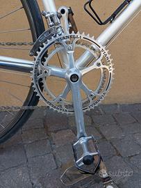 Bici da corsa vintage anni 80", fatta fare su misura nello storico negozio bresciano di Vianelli (Pierfranco Vianelli campione Olimpionico, telaio misura 58x58 con tubazioni Columbus 27,2 rinforzato e pantografato con forcellini Campagnolo e con colorazione ed adesivi originali dell'Epoca, cerchi FIR con copertoncini misura 28", cambio e deragliatore con levette Campagnolo Nuovo Record pantografate, guarnitura Ofmeca CX pressofusa con corona pantografata e con pedaline Ofmega complete di puntali e cinghiette, pinze e leve freni Universal mod.77 in alluminio, sella San Marco Concor Supercorsa in pelle con reggisella 3TTT scaricato, pipa pantografata e piega manubrio 3TTT con nastratura nuova. Perfettamente funzionante e revisionata (cavi, guaine, freni, movimenti vari ecc) pronta per essere utilizzata nelle ciclostoriche come l'Eroica oppure per le pedalate di tutti i giorni. Spedizione tramite corriere espresso al costo di 30 euro con pagamento sicuro e semplice tramite bonifico; Solo interessati. Astenersi perditempo. Grazie