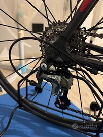 Vendo, causa inutilizzo, bici da corsa Mondial CLR80 in alluminio, forcalla carbonio, adatta per altezza 170-180cm con ruote Microtec in alluminio, gruppo Shimano Tiagra 52-34 completa di pedali Look Keo Max 2, sempre revisionata a tagliandata presso rivenditore.