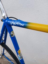 vendo bici da corsa Greg Lemond anni 90. la bici è appena stata riassemblata con guaine e cavi nuovi campagnolo. componentistica tutto campagnolo veloce. taglia 56... adatta a persone da 1.90 e oltre. manubrio cinelli oversize nastrato nuovo. mai utilizzata dopo il restauro. regolazione cambio ok. telaio firmato pantografato Greg Lemond. da sostituire copertoni perche vecchi. per il resto è pronta all'uso. preferisco ritiro in zona