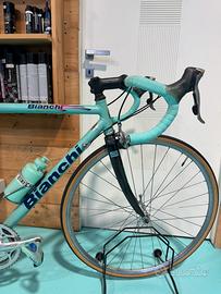 Bianchi MEGA PRO, alluminio con forcella in carbonio completamente revisionata in tutte le parti, nastro manubrio e gomme leve nuovi, tubolari nuovi…ecc