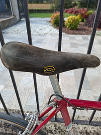 vendo bici da corsa vintage anni 70, taglia 55 , cerchi per palmer, palmer con 200km fatti,cambio simplex 2 x 5 velocità, perfettamente funzionante, nessun lavoro da eseguire, telaio senza botte, alcuni segni sulla vernice originale come da foto.