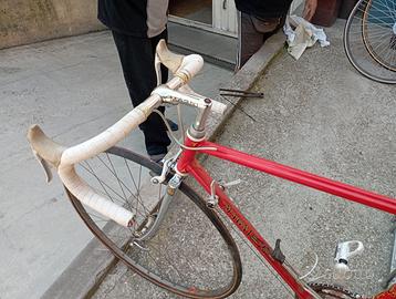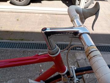 Bici da Corsa Vintage MAGNI "Pep" - Acciaio Columbus - Un gioiello italiano Se cerchi una bicicletta che non sia solo un mezzo di trasporto, ma un’esperienza, l’hai trovata. Metto in vendita questa splendida Magni, un capolavoro dell’artigianato italiano costruito da Pep Magni. Non è la solita bici in carbonio senz'anima: qui si parla di acciaio che "canta" sull'asfalto, di saldature fatte a regola d'arte e di quell'eleganza rossa intramontabile che attira gli sguardi a ogni stop. Perfetta per chi vuole distinguersi nelle uscite domenicali o per chi sta preparando una Eroica con uno stile impeccabile. La bici è stata conservata con cura ed è montata con componenti che hanno fatto la storia: Telaio: Acciaio Columbus (leggerezza e reattività garantite). Gruppo: Mix di alta qualità dell'epoca, con freni e leve Shimano 600 (Ultegra vintage) e deragliatore preciso. Guarnitura: Shimano 600, un classico per affidabilità. Sella: San Marco Regal in pelle (una delle selle più iconiche e comode mai prodotte). Manubrio e Attacco: Pantografato Magni, un dettaglio da veri collezionisti. Cerchi: Mavic per tubolari/copertoncini (profilo basso, look classicissimo). Dettagli: Forcella cromata e foderi posteriori cromati in ottime condizioni. La bici è marciante e pronta all'uso. Segni del tempo presenti ma minimi, che ne autenticano la storia senza comprometterne la bellezza o la meccanica. Nota: consiglio una revisione ai tubolari/copertoncini se si intende usarla per lunghe distanze subito. Prezzo: 600 € (trattabili dopo visione) Dove: GONZAGA (MN) Disponibile per qualsiasi prova. Preferisco lo scambio a mano per permettervi di ammirare dal vivo la qualità del telaio.