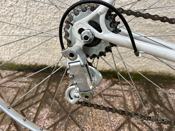 Vendo per inutilizzo bici da corsa Vicini in buone condizioni, la bici minta cambio campagnolo 5 velocità tutto funzionante,mancano solo i tubolari. Bici perfetta per corse Eroica fatte con bici d’epoca.