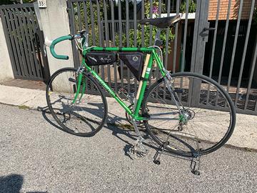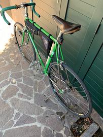Vendo bici da corsa anni '80, interamente restaurata lo scorso anno dal venditore originale (Spezzotto di Conegliano TV). E' stata ridipinta con rifacimento di tutte le parti cromate). Il telaio è in acciaio (tubi Columbus con rinforzo elicoidale). monta il gruppo Campagnolo Chorus completo in tutti i vari componenti: anche tubo sella e pedali. I mozzi delle due ruote sono Campagnolo Record C. I cerchi Campagnolo. Sella Rolls in cuoio. la misura del telaio è una L. (misure in dettaglio del telaio, su richiesta).