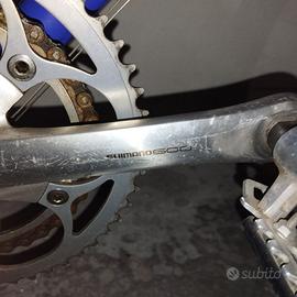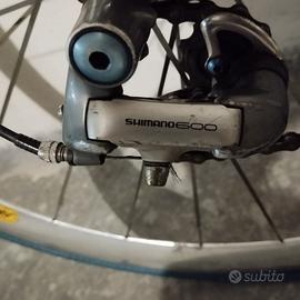 Bicicletta in acciaio Colombus fine anni 80, con forcella cromata Twinair, monta uno Shimano 600 a 8 v guarnitura cromata, leve freno commerciali.