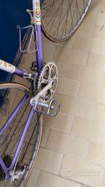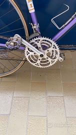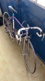 Questa bicicletta da corsa in acciaio con cambio campagnolo è la scelta ideale per chi ama il ciclismo con stile. Telaio leggero e resistente, colorazione viola originale, manubrio drop per una guida sportiva e confortevole. Perfetta per uscite su strada, collezionisti o amanti del vintage.