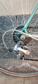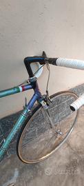bici da corsa vintage Marca Sumin misura 54.telaio in acciaio doppio spessore ultraleggero 7 rapporti guarnitura 52/43 pneumatici 700x23 tubolari .bici rivista ripulita ingrassata pronta all'uso per allenamento invernale.