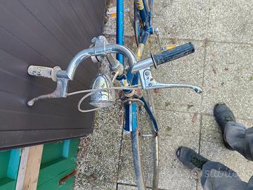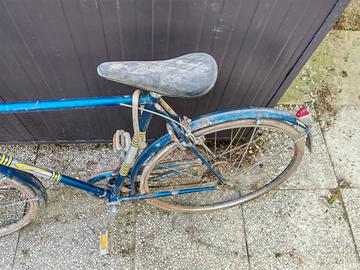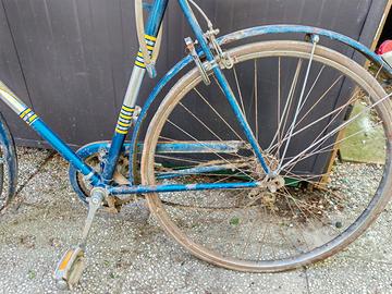 Bici da corsa vintage Trarovi originale, Made in Italy, colore blu. Telaio classico in acciaio, manubrio corsa, freni tradizionali e componenti d’epoca. Presenta segni evidenti del tempo: ruggine superficiale, gomme vecchie e revisione consigliata, quindi ideale per collezionisti o per chi vuole restaurarla. Ottima base per un progetto vintage / eroica