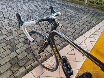 Vendo questa bicicletta con telaio in carbonio, usata pochissimo, appena revisionata con cambio catena, pulizia e cambio gommini impugnatura (costo della revisione 180 Euro), per uomo alti circa 1,80cm, altre misure a richiesta, non spedisco, consegna de visus