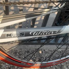 Vendo per inutilizzo, bici da corsa marca Wilier, acquistata nuova 12 anni fa, taglia 28. Monta cambio a manubrio a 9 Velocità Mirage Campagnolo, n' 2 volantine. Davanti denti 52/32, dietro dal 14 al 28. Ruote Ambrosio, sella Italia, manubrio Itm, pedali a sgancio Mike ( a disposizione scarpe taglia 41). Contachilometri presente. Non spedisco. Prezzo trattabile dopo visione.