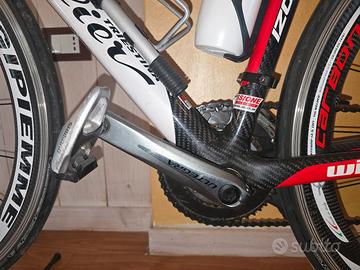 Vendo splendida Wilier Triestina da corsa in carbonio, leggera e reattiva, perfetta per allenamenti su strada o gare amatoriali. Tenuta sempre al chiuso, usata solo per uscite amatoriali, mai caduta.