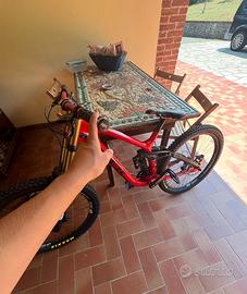 Vendo a malincure la mia bellissima trek session 9.9 da dh, usata per 4 stagioni e ogni fine stagione sempre portata a cambiare cuscinetti e revisione forcella anteriore e posteriore. La bici é montata su un telaio in taglia M 27,5 e 27,5 le ruote sono nuove ho fatto solo due discese con queste gomme che sono state nastrate e laticizzate e al posterio é anche stato messo un salsiccioto. Alla bici sono stati cambiato tutti i cuscinetti del carro posteriore esattamente 2 mesi fa quindi sono perfetti e tral altro da quel momento la bici é rimasta ferma quindi é in condizioni perfette. Le componeti della bici: •Fox 40 kashima •Fox dhx2 con stelo in kashima con molla da 400 ma insieme cedo anche una molla della nukproof da 500 con adattatore apposta per questo ammortizzatore. •Freni sram code con pastiglie carbon ceramiche. • Trasmissione e cambio da 10 velocita shimano saint molto reattivo e veloce a parer mio. Questa bici presenta alcuni graffi e nella parte sotto ha qualche sceggiatura della vernice peró é tutto perfettamente in ordine e funzionante. Il prezzo penso sia ottimo per come é asseblata e in piu comunque cedo pezzi di ricambio e due forcellini per il cambio. Prezzo leggermente trattabile. La spedizione non é disponibile perché preferisco che chi compra possa visionare bene la bici con le sue mani. Per il ritiro o nelle vicinanze di casa mia oppure si trova un luogo che sia comodo a entrambe le parti Sono disponibile per altre foto o comunque per qualsiasi informazione per chi é interessato al acquisto. NO PERDITEMPO ACRIVETEMI SONO SE VERAMENTE INTERESSATI. Il mio numero é 3481915295