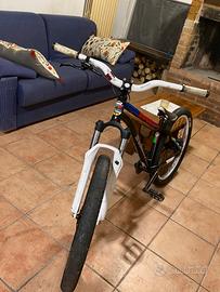 Vendo bici da dirt hardy steel 2 la bici e in perfetto stato apparte un po di graffi ho rifatyo da poco i cuscinetti delle ruote e le sospensioni ha un freno shimano mt-200 nuovo e anche disco nuovo da 160mm pronta all uso ha ruote da 24 con copertoni in buono stato per informazione e altro scrivetemi