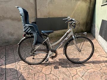 BICI DA DONNA IN ALLUMINIO PREGIATO CON CAMBI SHIMANO CON CAMBIO AL MANUBRIO, VENDO PER INUTILIZZO COMPLETA DI SEGGIOLINO BIMBO NUOVO E MAI USATO, CATENA DI CHIUSURA