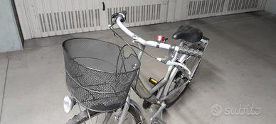 Vendo bici da donna a 6 marce come nuova. Appena sistemata. Ruote sostituite. È come nuova. Luce anteriore funzionante. Presenta un cestino frontale e un portapacchi sul retro.