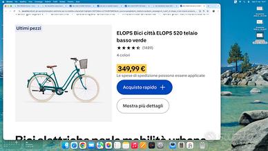 Vendo bicicletta ben tenuta e perfettamente funzionante. Telaio basso color verde modello ELOPS 520 comprata da decathlon (vedi foto).