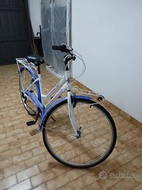 la bici è disposta di portapacchi posteriore e di portapacchi anteriore dove si mette il cestino