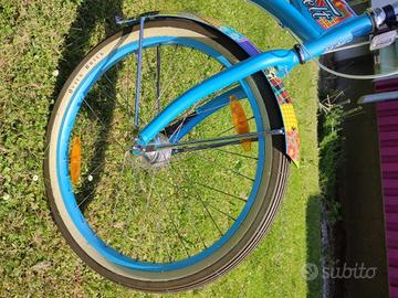unica nel suo genere, introvabile, bellissima bicicletta da donna FELT, colore turchese con dettagli patchwork. Telaio in acciaio, scatto fisso (ha i freni nel manubrio ma anche nei pedali). Usata ma tenuta perfettamente, senza ammaccamenti o segni di usura.