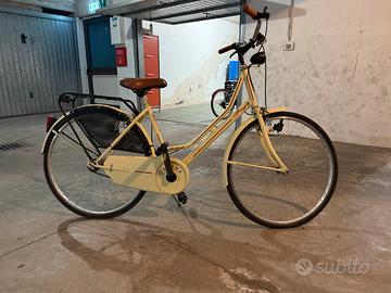 Bicicletta da donna modello olandese completa di portapacchi posteriore e luci con dinamo. Luce anteriore e camere d’aria ruote da sostituire. Solo consegna a mano.