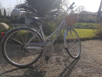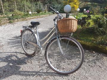 Bellissima bici da donna in perfetto stato, marca Lazzaretti, con cambio, portapacchi anteriore e posteriore, cesto in vimini.