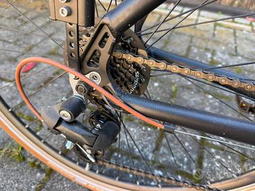 Vendo bici da donna di colore nero, in condizioni pari al nuovo. La bicicletta è stata usata pochissimo ed è sempre stata tenuta con cura. Dotata di cambio Shimano preciso e affidabile, perfetta sia per uso cittadino che per passeggiate anche su sterrato. Telaio comodo e posizione di guida confortevole. Pronta all’uso, non necessita di alcun intervento.