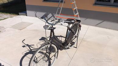 Per inutilizzo vendo elegante e robusta bici da donna di colore nero con fregi dorati (retrò Holland) praticamente nuova, cerchioni da 26" in alluminio, due portapacchi, catena con carter , protezioni per abiti sulla ruota posteriore, blocco antifurto, cavalletto centrale e laterale. Ottimo regalo Natale !.