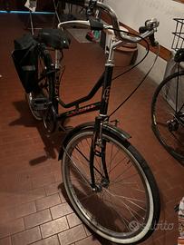 Bici da donna nera stile vintage in perfette condizioni con borsa laterale