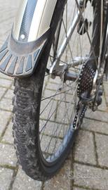 Vendo bici da donna in alluminio SCOUT misura ruota da 26 con cambio shimano : 3 corone anterioni da 42-34-24 e posteriore 7 velocita' da 14-28. Sul manubrio si cambia con le manopole . Copertone su ruota posteriore tassellato. Regalo un'altro copertone per scorta tassellato.