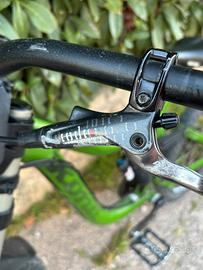 vendo kona operator da downhill ottima, spurgo freni e cambio pasticche appena fatto, revisione ammortizzatori 1 mese fa, monta i freni code r, forcella anteriore rock shox boxxer escursione 200mm, ammortizzatore rock shox posteriore escursione 200mm a molla, la bici monta ruote da 26 con gomme maxxis minion dhf.