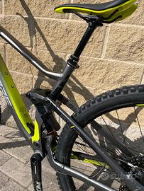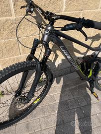 La bici nella foto è una mountain bike (MTB) full suspended (cioè con sospensioni sia anteriori che posteriori), progettata per percorsi off-road, sentieri e discese.