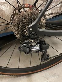 Vendo per inutillizzo bici da gravel GT Grade Carbon Pro del 2000. La bici e in ottima condizione e mantenuta sempre in modo maniacale. Misura 58/L, cambio elettronico Shimano Ultegra Di2 11 rapporti, guarnitura FSA con doppia corona 46/30 e pacco pignone 11/34, freni a disco idraulici, cerchi DT Swiss tubeless con copertoni Specialized, manubrio Kitchen Sink con suo borsetta (manubrio originale incluso), attacco manubrio FSA, sella Ergon, pedali Shimano XTR inclusi, catena nuova e carica batteria inclusa. Include anche le borse Topeak posteriore, anteriore, e centrale piu una borsa Miss Grape per il tubo orizontale, e porta sacchi forcella sempre della Topeak. Un vero affare per una bici perfetta! Molto leggera a 9,5kg!