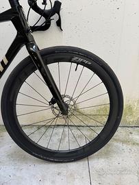 Bici Giant revolt advanced 1, ho cambiato la sella (marca SMP), il manubrio (marca Ritchey) e le ruote (marca Zip 303 SE in carbonio) colore verde bosco lucido taglia M/L. Cambio Sram rival elettronico, bici anno 2022. Guarnitura sram rival.