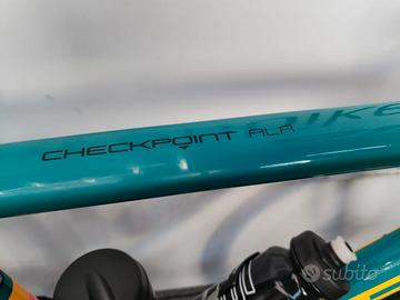 Bici da Gravel Trek Checkpoint ALR Custom OTTIME CONDIZIONI - USATO GARANTITO Taglia: 52 (53,6 cm orizzontale - altezze consigliate da 1,63 a 1,70) Telaio: Alluminio Alpha 300 Series, tubo sterzo conico, passaggio cavi interno Control Freak, tendicatena 3S, attacchi per portapacchi e parafango, disco flat mount, forcellini orizzontali scorrevoli, perno passante 142x12mm Forcella: Checkpoint carbonio, cannotto sterzo conico in lega, supporti portapacchi, attacchi per parafango, disco flat mount, perno passante 12x100mm Gruppo: Campagnolo Ekar 1×13 velocità Guarnitura: Campagnolo Ekar carbon, 40 T – 172,5 mm Cassetta: Campagnolo Ekar 9/42 T, 13 velocità Ruote: Campagnolo Shamal Carbon, 622x21C, 2-Way Fit Pneumatico: Vittoria Terreno Zero, 38mm, Tubeless Attacco manubrio: Bontrager Elite 100 mm Manubrio: Bontrager Pro carbonio, 420 mm Freni: Campagnolo Ekar, 140 mm SPEDIZIONE INCLUSA FINANZIAMENTO ONLINE