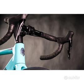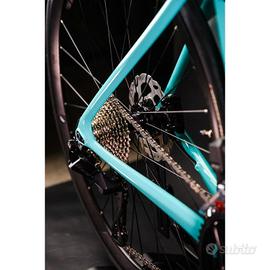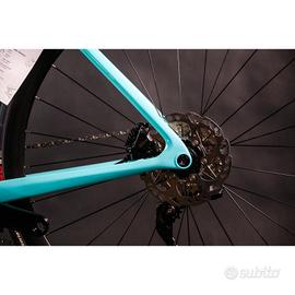 Taglia: 55 - 57 Anno Prodotto: 2024 Link diretto shop online: https://www.sportlifee.it/bici/bici-da-strada-nuova-bianchi-sprint-105-di2-12s-2024.html * Possibilità di finanziamento tramite SANTANDER (pagamento a rate) * Possibilità di noleggio stagionale con riscatto 2 anni di garanzia Spedizione gratuita garantita in tutta Italia! TELAIO: Sprint Disc carbonio monoscocca, compatibile cambi meccanici/elettronici, PressFit 86,5x41mm, tubo sterzo 1.1/4"-1.1/8", morsetto reggisella integrato, forcellino full carbon, flat mount, perno passante 12x142mm, compatibile pneumatici 32mm, misure 47-50- 53-55-57-59-61 cm FORCELLA: Bianchi Full Carbon Disc 1.1/4">1.1/8", perno passante 12x100mm CUFFIA: Fsa Orbita C-33, NO.44E, 1.1/8">1.1/4" CAMBIO: Freno a disco idraulico Shimano 105 Di2 da strada DERAGLIATORE POSTERIORE: Shimano 105 Di2 RD-R7150 12v DERAGLIATORE ANTERIORE: Shimano 105 Di2 FD-R7150 GUARNITURA: Shimano FC-R7100, 105 Hollowtech 2, 12vel, 170-172,5-175mm, 50x34T, Lunghezza pedivella: 170mm-47/53cm, 172.5mm-55/59cm, 175-61cm MOVIMENTO CENTRALE: Shimano SM-BB72-41B, PressFit CATENA: Shimano 105 Di2 CASSETTA: Shimano 105 Di2 CS-R7100, 11-12-13-14-15-17-19-21-24-27-30-34T FRENI: Shimano BR-R7170 LEVE FRENO: incluso con cambio ROTORE: Shimano SM-RT70, diam. 160mm RUOTE: Lega Velomann VR30, freno a disco 622x19C, copertoncino PNEUMATICO: Vittoria Rubino IV 700x28, 60TPI, G2.0 Grafene STELO: Velomann Alloy 6061, rise +/- 7°, altezza 38mm, Oversize, 1.1/8", lungh: 70mm-44cm, 90mm-47/50cm, 100mm-53cm, 110mm-55/57cm, 120mm-59/61cm MANUBRIO: Velomann Compact, Flat Top, lega 6061 diam. 31,8mm, portata 80mm, caduta 130mm, Misura: 400mm-44/53cm, 420mm-55/59cm, 440mm-61cm IMPUGNATURE: Tappo in sughero c/logo Bianchi REGGISELLA: Velomann Asta in lega AL6061, testa in lega, offset 15mm, 27,2mm, Lunghezza: 300mm-44cm, 350mm-47/61cm SELLA: Velomann 1285 URN, binari in acciaio, lunghezza/larghezza 278x144mm