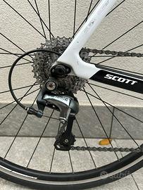 Vendo bicicletta da corsa Scott Addict 30 del 2019 in carbonio, guarnitura Tiagra con pacco pignoni 11-32 nuovo, freni a pattino, circa 3600km. Taglia 56