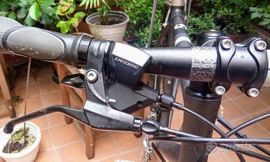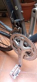 Bici B-Twin Fit 5, telaio alluminio, ruote 28", Misura M (h 170/180). Cambio 3x9 Shimano Deore/Sora: forcella anteriore in carbonio. portapacchi alluminio, proteggi cambio posteriore, prolunghe manubrio x viaggio, gommata stradale/sterrato.
