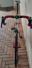 Bicicletta da strada NINE9 FALCON, sport evolution TG. M 54. Telaio monoscocca carbonio, montata ULTEGRA meccanico 11v. Manubrio e attacco XLC EVO, sella selle Italia in carbonio, regisella GOSSAMER, guarnitura 172.5 50/34 11/28 €600, con €300 cerchi carbonio H 42 con pista alluminio.