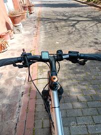 bici da trekking MTB. Telaio in alluminio, ruota da 27.5 , freni idraulici Shimano. forcella ammortizzata, reggisella amortizzato. porta borraccia e porta pacchi con portaoggetti. ciclo computer. copertone di scorta ulteriore. bici mai usata nel fango in ottime condizioni. pronta all' uso. Mai incidentata.