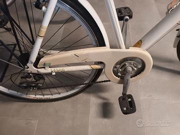 Cambio shimano a 7 rapporti, porta pacchi, lucchetto di sicurezza, luci anteriori e posteriori, cerchi bianchi. Usata pochissimo.