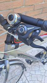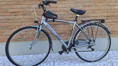 Bici da uomo, ruote da 28", telaio in alluminio, cambio shimano 3x7, completa di luci anteriore e posteriore, porta pacchi posteriore. Bici pari al nuovo.