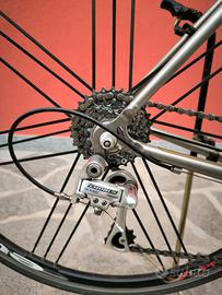 Vendo bici da corsa marca de rosa in titanio, cambio chorus campagnolo, forcella look in carbonio, reggisella in carbonio, cerchi campagnolo eurus, pedali look. Taglia 50/51. La bici è di mio suocero, per chi è interessato posso dargli il suo numero di telefono.
