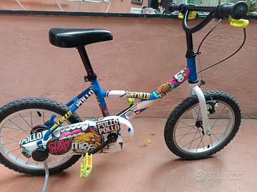 Bicicletta con ruote da 16" ideale per età 4/6 anni. Condizioni come da foto. Ha le rotelline posteriori removibili. Visionabile a Genova Sturla.